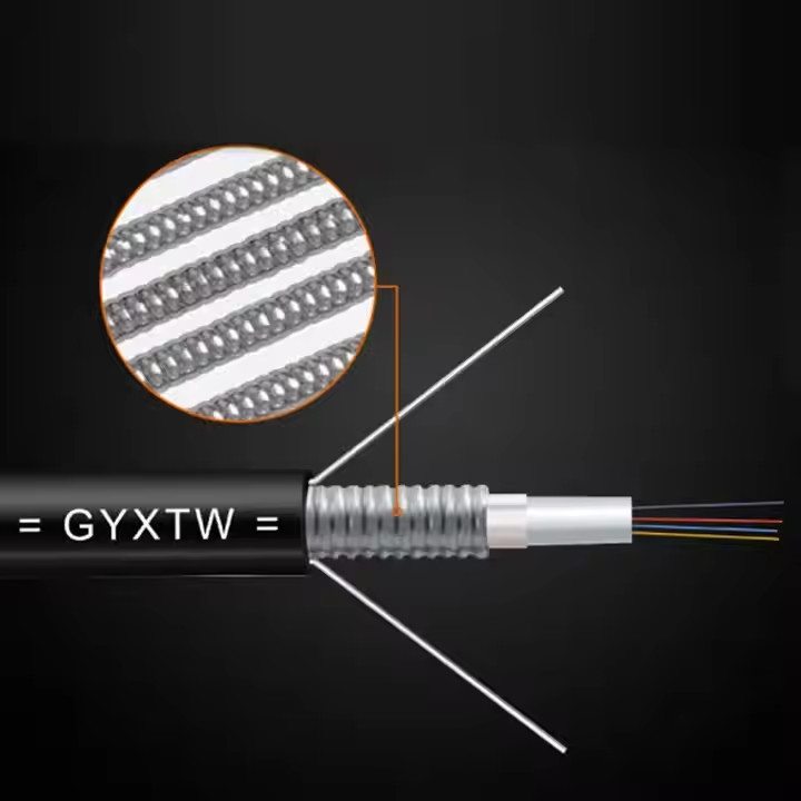 Τα καλώδια οπτικών ινών GYXTW υιοθετούν ίνες μονοδιαχείρισης ή πολυδιαχείρισης που στεγάζονται σε χαλαρό σωλήνα από υψηλής αντοχής πλαστικό, γεμάτο με ανθεκτικό στο νερό τζελ.Ένα στρώμα PSP τυλίγεται κατά μήκος γύρω από το σωλήναΔύο παράλληλα καλώδια από χάλυβα ενισχύουν τον πυρήνα του καλωδίου.και ολόκληρη η δομή προστατεύεται από εξωτερική κάλυψη PE.