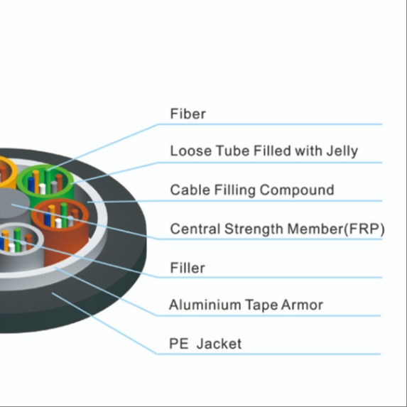 GYTA fiber optic cable uses a stranded loose tube structure around a central strength member to form a compact and stable core The core is wrapped with aluminum polyethylene laminate tightly bonded to a PE inner sheath providing strong longitudinal and radial moisture blocking Corrugated steel tape and a durable MDPE outer jacket offer additional mechanical protection making the cable ideal for outdoor environments