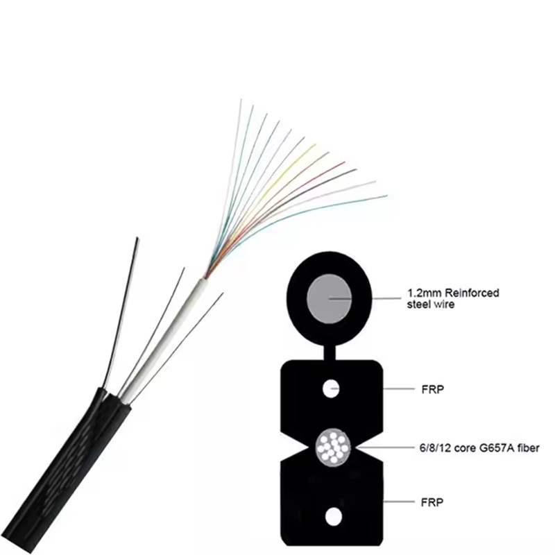 Αυτό το καλώδιο FTTH έχει μια κεντρική ίνα με δύο στερεά μέλη από χάλυβα και ένα πρόσθετο χάλυβα για επιπλέον αντοχή.